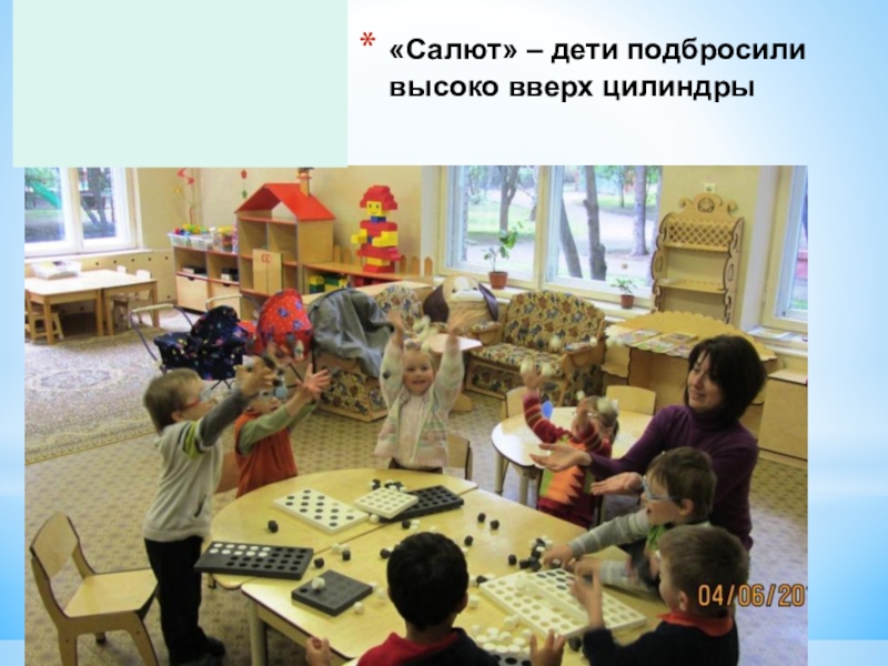 Слайд 71«Салют» – дети подбросили высоко вверх цилиндры