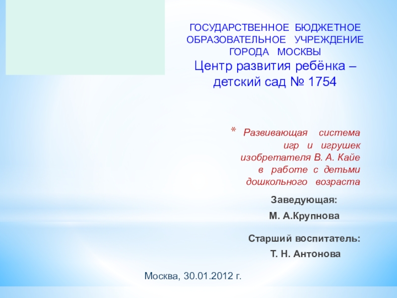 игры и развивающей предметной среды НИИ Дошкольного Образования