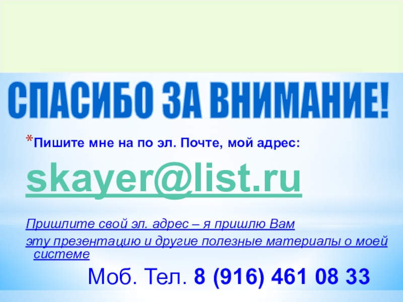 Слайд 91Пишите мне на по эл. Почте, мой адрес: