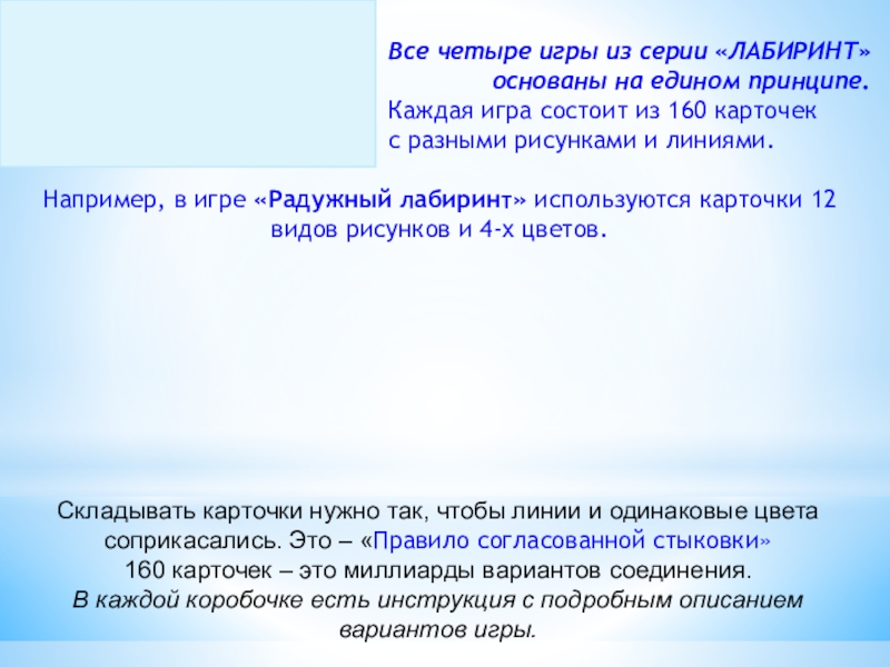 - одна игра применима как для игры одного ребенка, так и нескольких детей; игра антикомпьютерная,