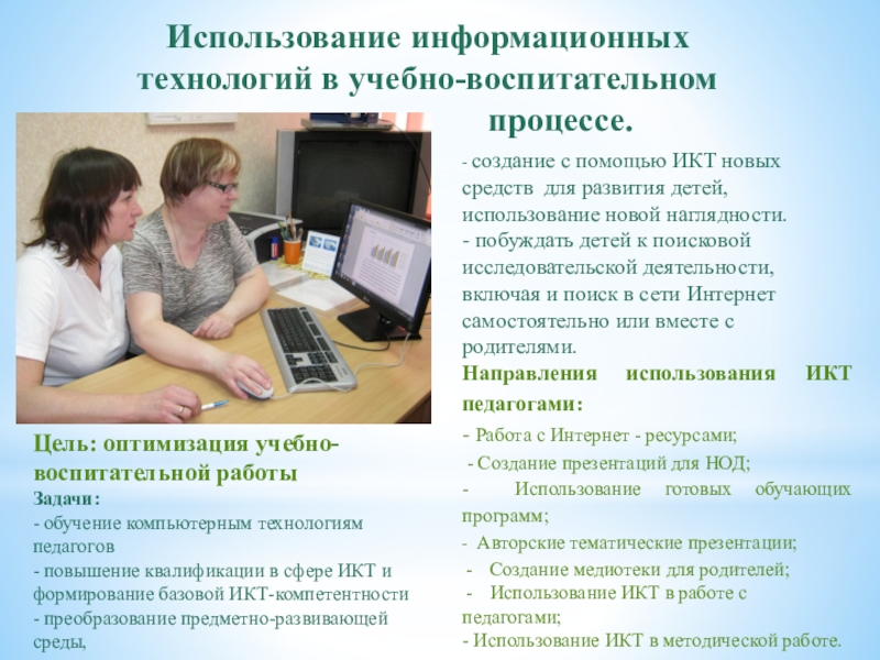 - создание с помощью ИКТ новых средств для развития детей, использование новой наглядности.