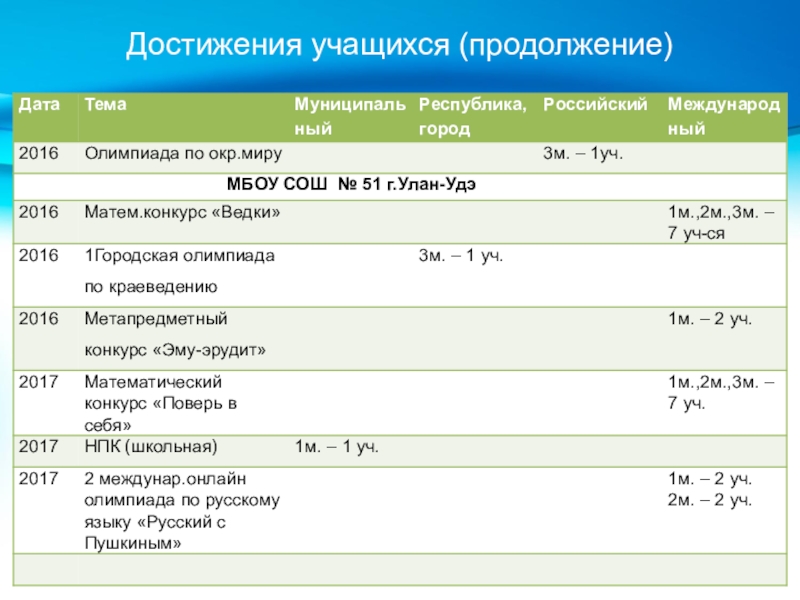 Слайд 19Достижения учащихся (продолжение)