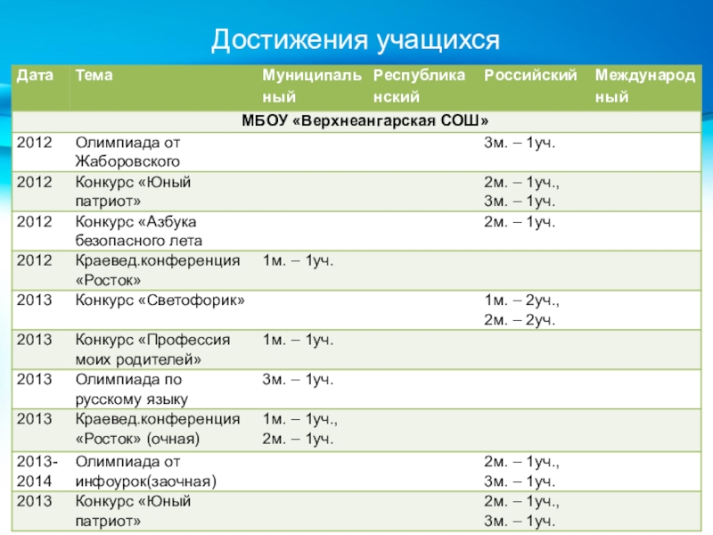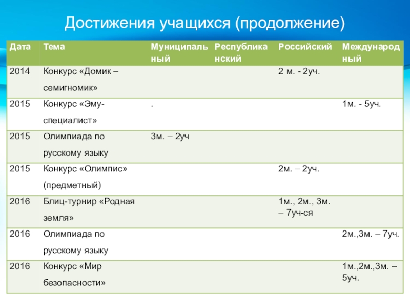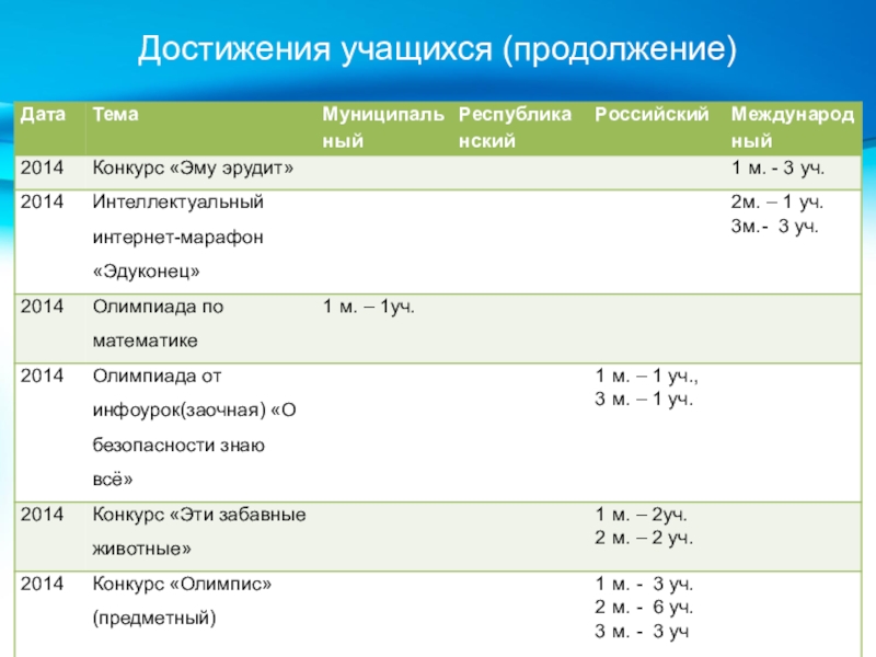 Слайд 20Достижения учащихся (продолжение)