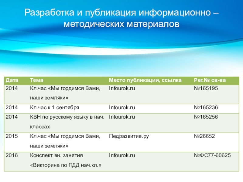 Слайд 16Разработка и публикация информационно – методических материалов