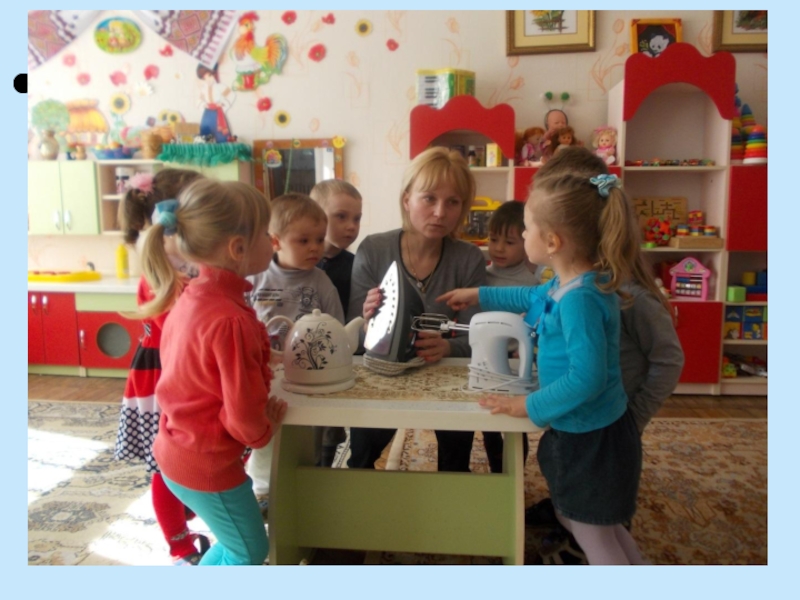 -на предмет безопасности предметного окружения: электропроводка, мебель, игровой материал и тд.