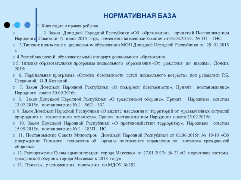 3.Типовое положение о дошкольном образовании МОН Донецкой Народной Республики от 29 01.2015г.