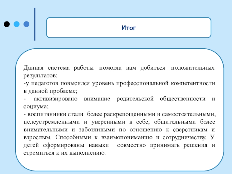 Данная система работы помогла нам добиться положительных результатов: