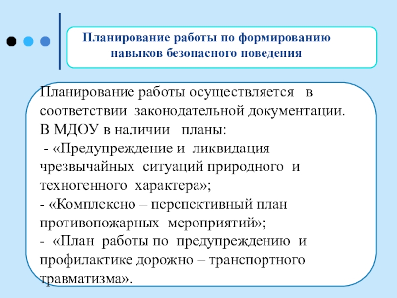 Планирование работы по формированию навыков безопасного поведения