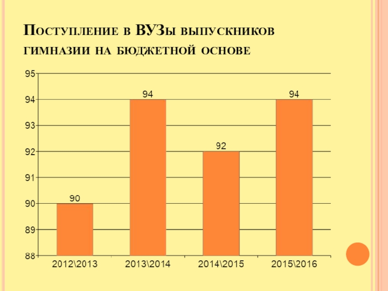 Слайд 7Поступление в ВУЗы выпускников гимназии на бюджетной основе