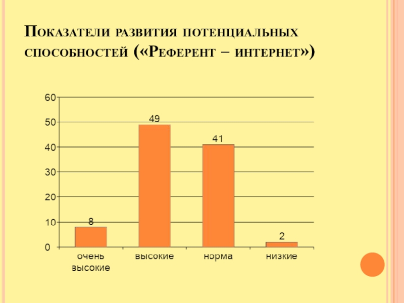 Слайд 4Показатели развития потенциальных способностей («Референт – интернет»)