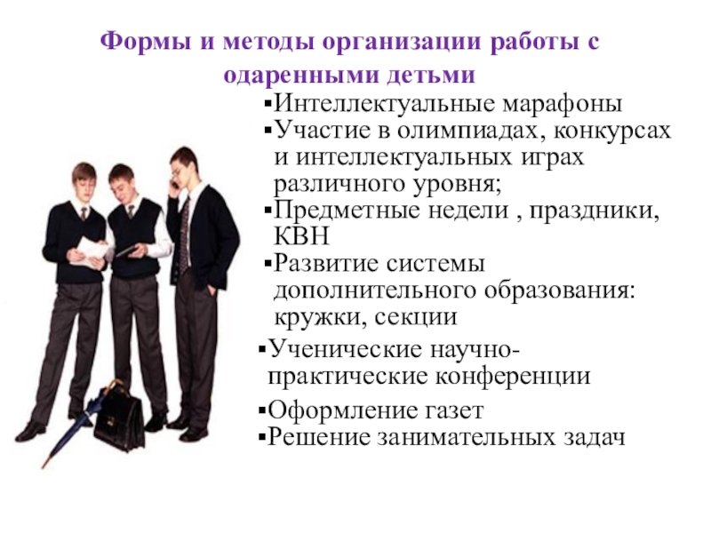 Слайд 13Формы и методы организации работы с одаренными детьми