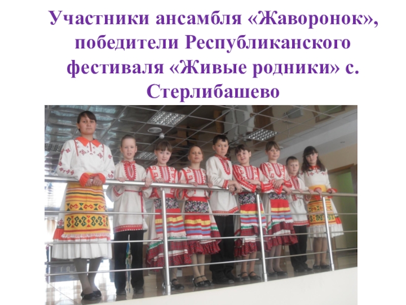 Слайд 28Участники ансамбля «Жаворонок», победители Республиканского фестиваля «Живые родники» с.Стерлибашево