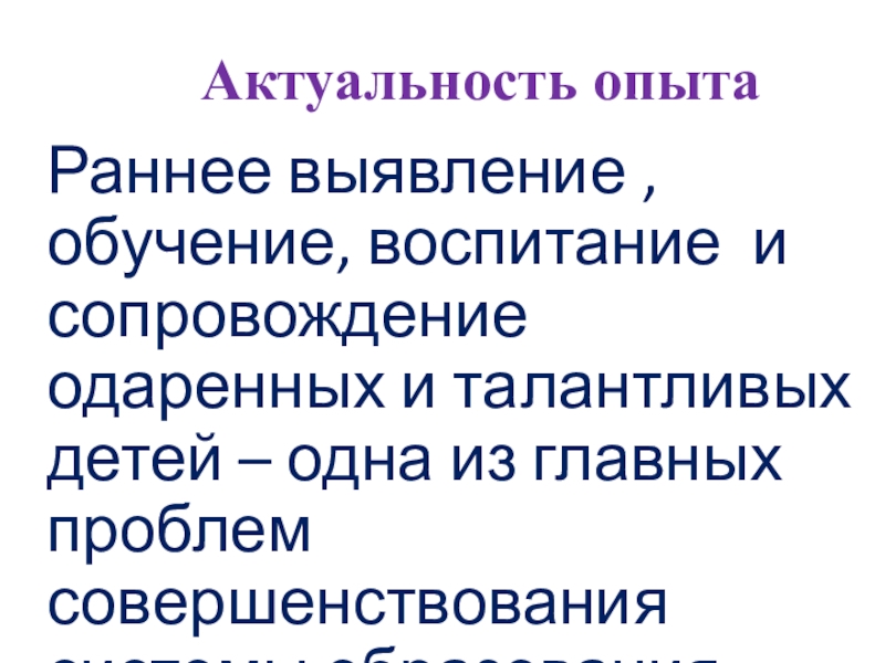 талантливых детей – одна из главных проблем совершенствования системы образования.