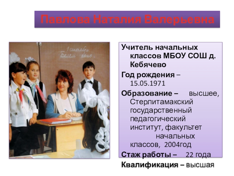 Учитель начальных классов МБОУ СОШ д.Кебячево
