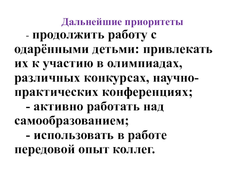 - продолжить работу с одарёнными детьми: привлекать их к участию