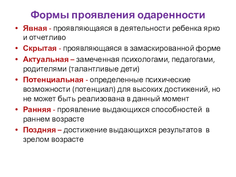 Явная - проявляющаяся в деятельности ребенка ярко и отчетливо