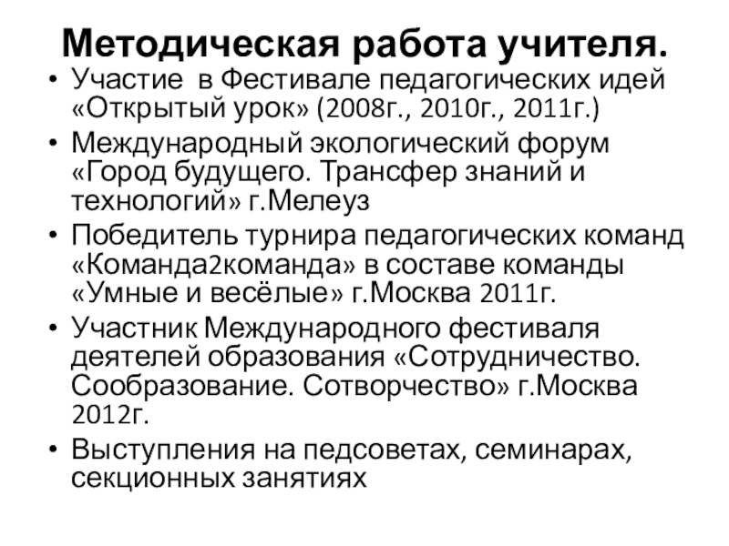 Участие в Фестивале педагогических идей «Открытый урок» (2008г., 2010г.,