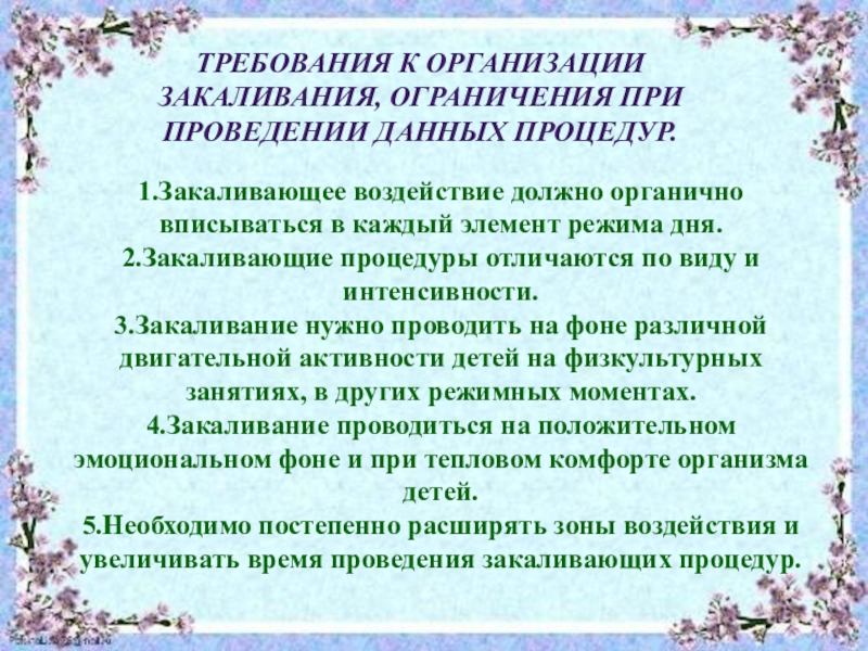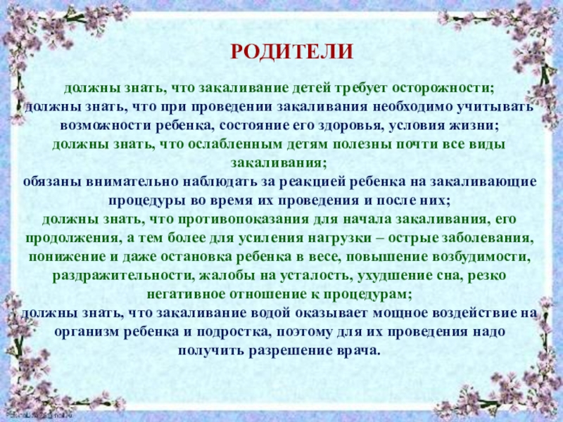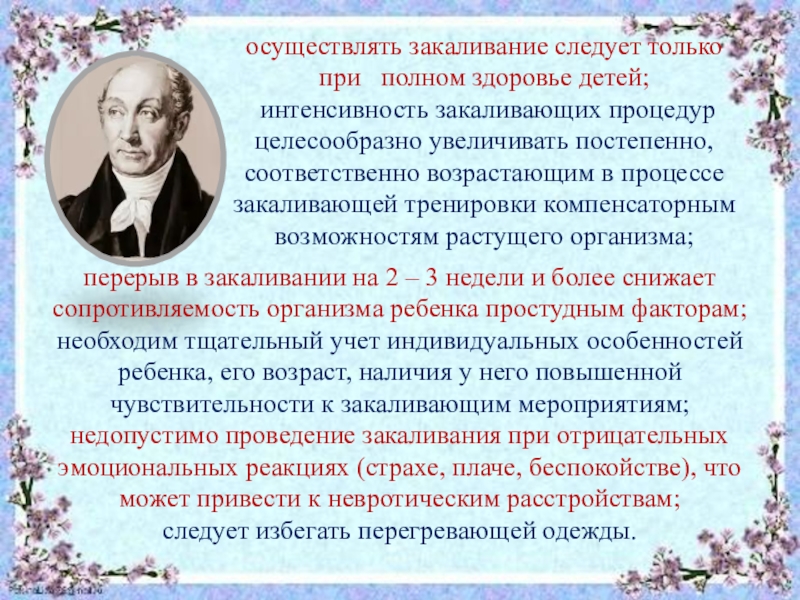 необходим тщательный учет индивидуальных особенностей ребенка, его возраст, наличия у него повышенной чувствительности к закаливающим мероприятиям;