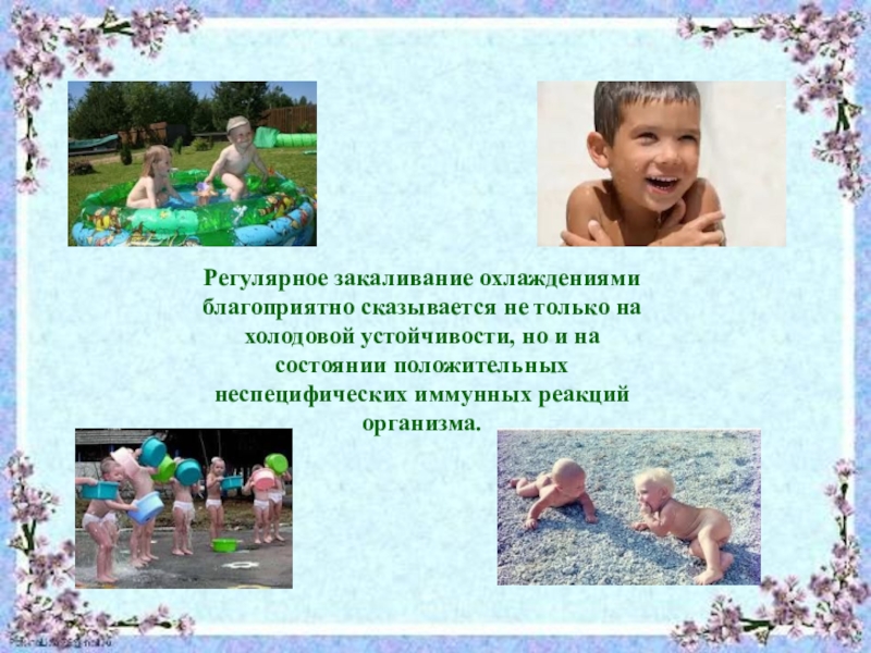 перерыв в закаливании на 2 – 3 недели и более снижает сопротивляемость организма ребенка простудным факторам;
