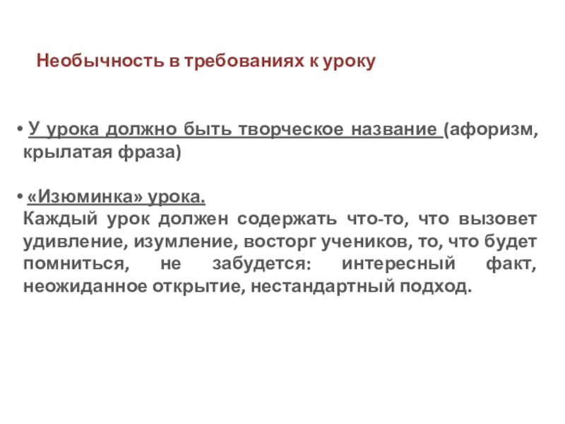 Необычность в требованиях к уроку