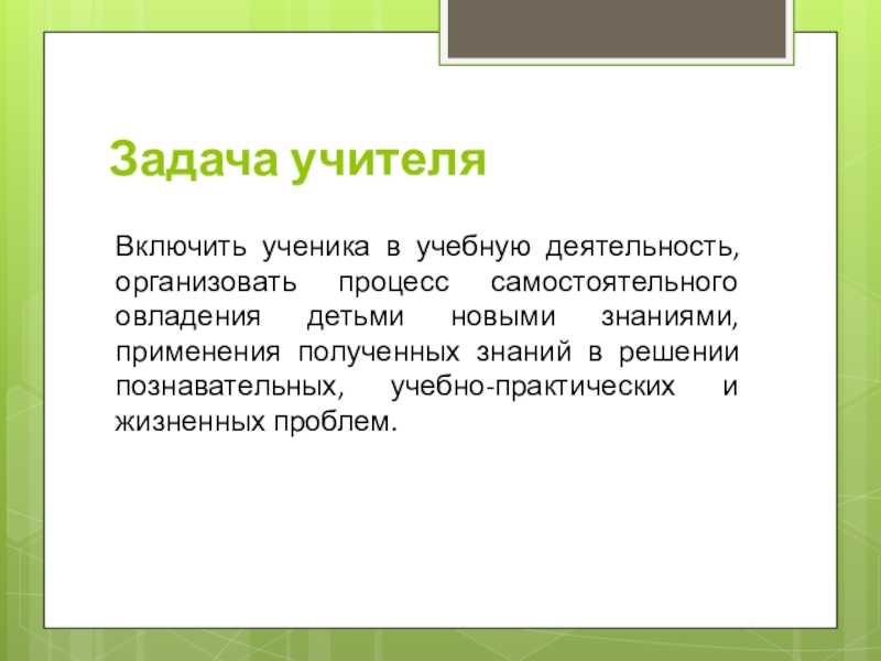 Учебная задача – это цель, которая мотивирует изучение нового материала: