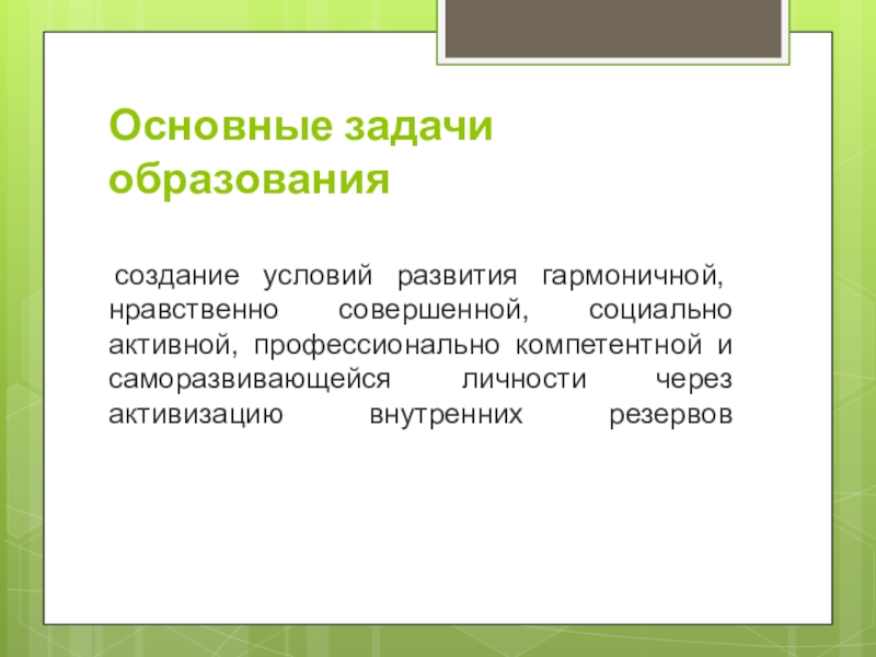 создание условий развития гармоничной, нравственно совершенной, социально активной,