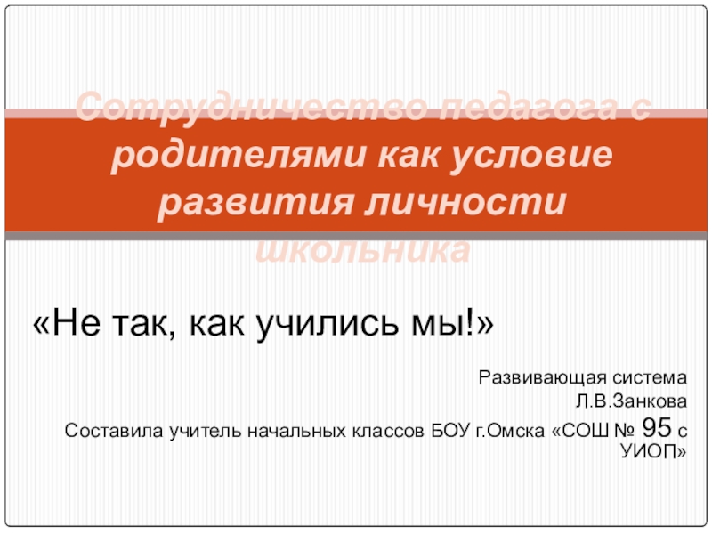Сотрудничество педагога с родителями как условие развития личности школьника