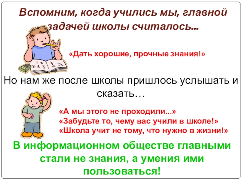 В информационном обществе главными стали не знания, а умения ими пользоваться!