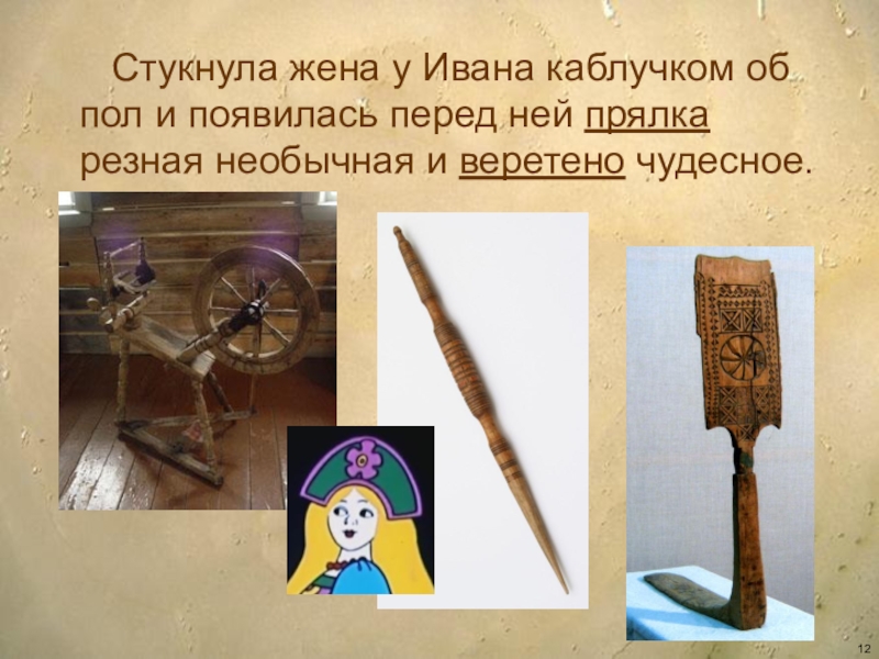Слайд 12 Стукнула жена у Ивана каблучком об пол и