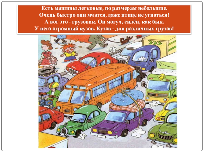 Слайд 4Есть машины легковые, по размерам небольшие.