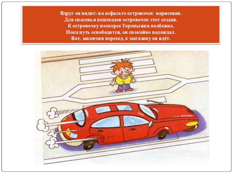 Слайд 11Вдруг он видит: на асфальте островочек нарисован.
