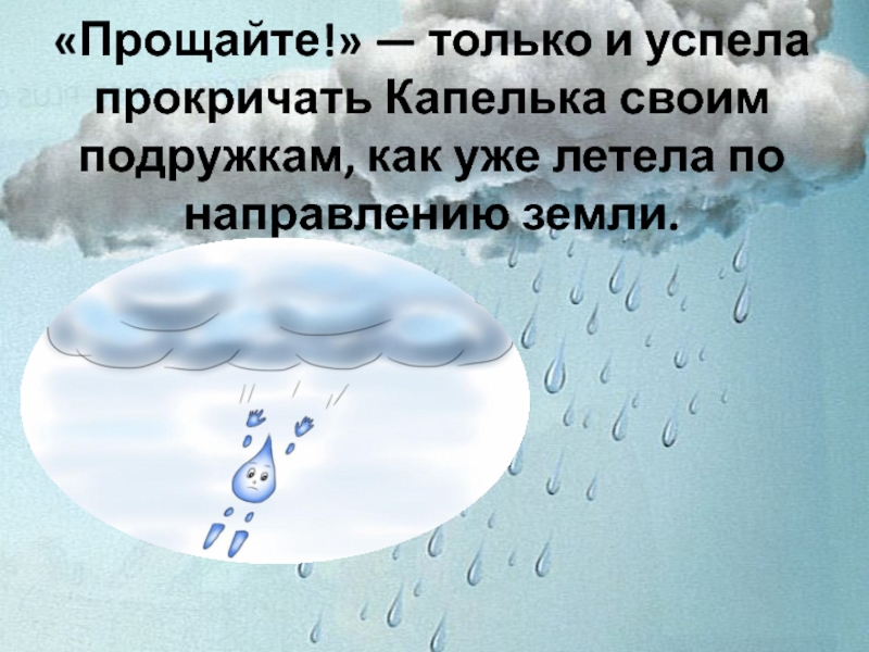 Слайд 4 «Прощайте!» — только и успела прокричать Капелька своим подружкам, как уже