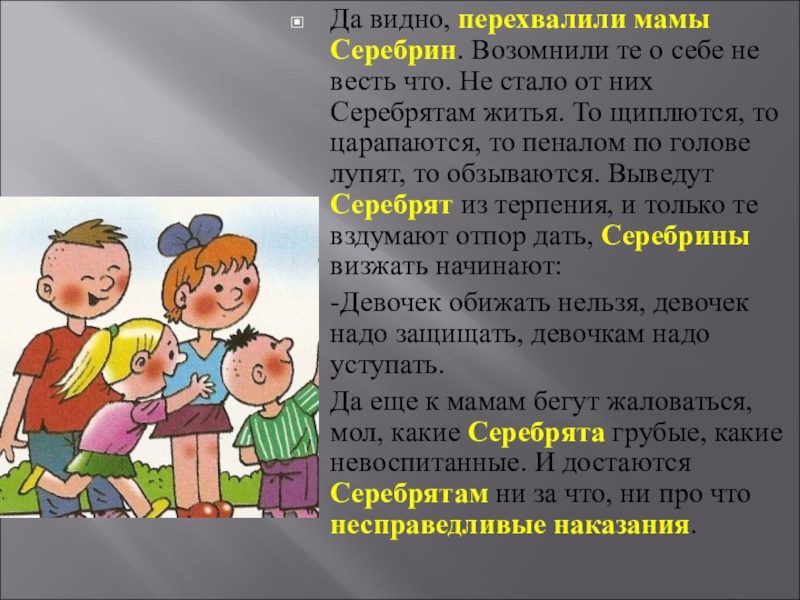 Слайд 4Да видно, перехвалили мамы Серебрин. Возомнили те о себе не весть
