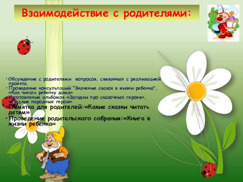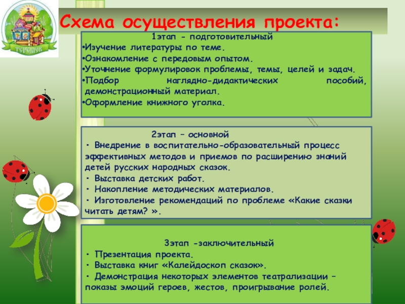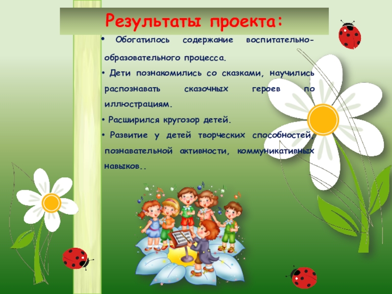 • Внедрение в воспитательно-образовательный процесс эффективных методов и приемов по расширению знаний детей русских народных сказок.