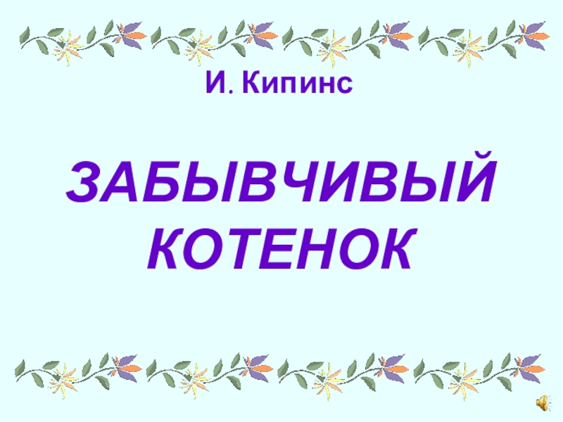 И. Кипинс ЗАБЫВЧИВЫЙ КОТЕНОК