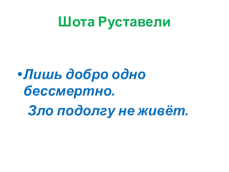 Шота РуставелиЛишь добро одно бессмертно.   Зло подолгу не живёт.