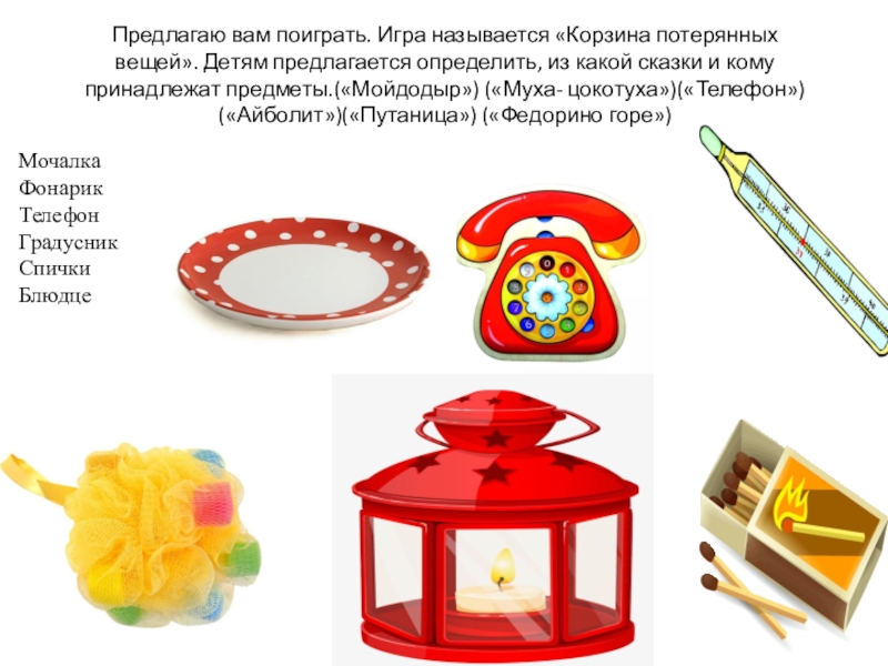 - Атрибуты к сказкам.