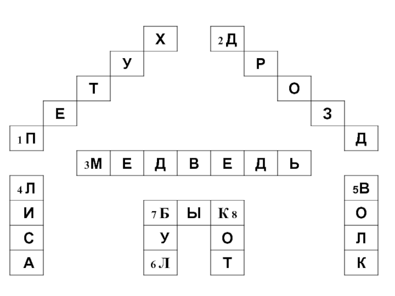 Слайд 25ЗАЯЦ ЛИСА ВОЛК МЕДВЕДЬ ПЕТУХ