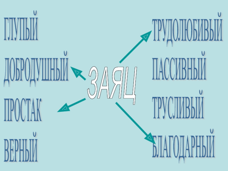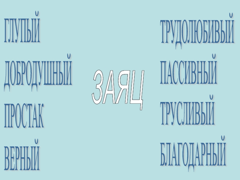 ГЛУПЫЙ  ДОБРОДУШНЫЙ  ПРОСТАК  ВЕРНЫЙТРУДОЛЮБИВЫЙ  ПАССИВНЫЙ  ТРУСЛИВЫЙ  БЛАГОДАРНЫЙЗАЯЦ