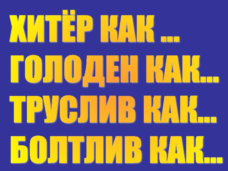 Слайд 5ХИТЁР КАК ... ГОЛОДЕН КАК... ТРУСЛИВ КАК... БОЛТЛИВ КАК...
