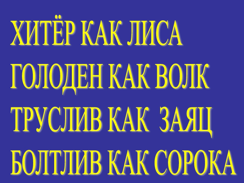 ХИТЁР КАК ЛИСА  ГОЛОДЕН КАК ВОЛК  ТРУСЛИВ КАК ЗАЯЦ  БОЛТЛИВ КАК СОРОКА