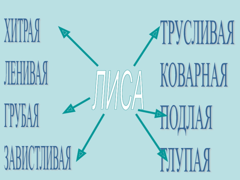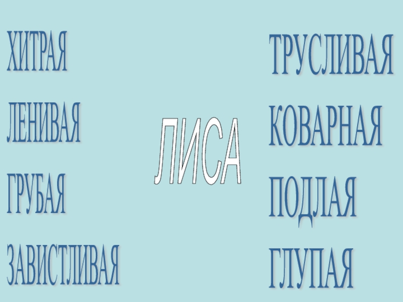 ХИТРАЯ  ЛЕНИВАЯ  ГРУБАЯ  ЗАВИСТЛИВАЯТРУСЛИВАЯ  КОВАРНАЯ  ПОДЛАЯ  ГЛУПАЯЛИСА