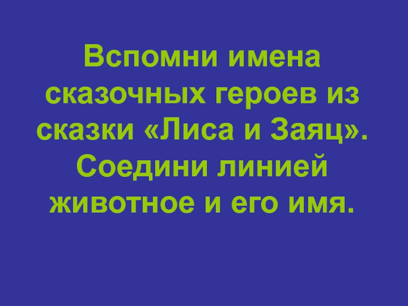 Слайд 24Вспомни имена сказочных героев из сказки «Лиса и Заяц».