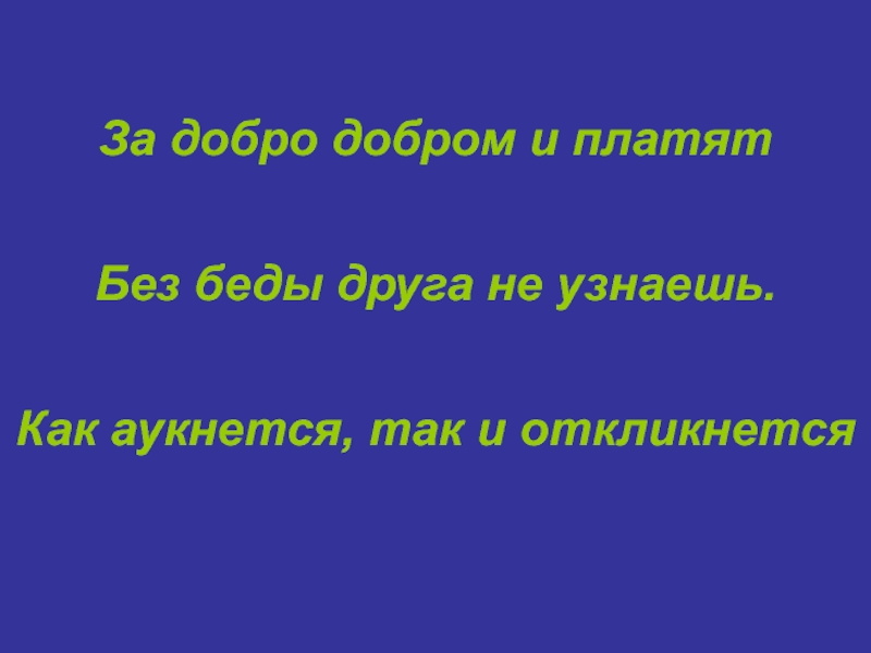 За добро добром и платятБез беды друга не узнаешь.Как аукнется, так и откликнется