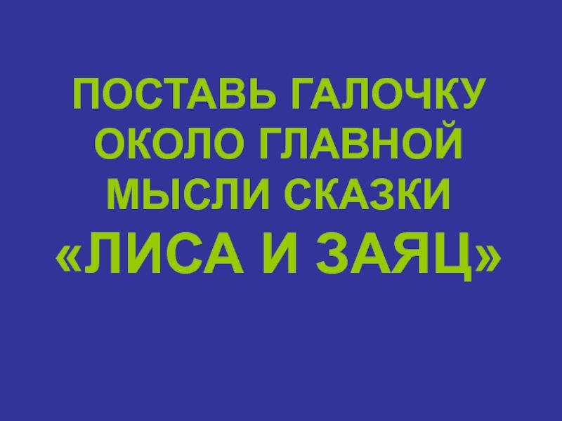 ПОСТАВЬ ГАЛОЧКУ ОКОЛО ГЛАВНОЙ МЫСЛИ СКАЗКИ «ЛИСА И ЗАЯЦ»