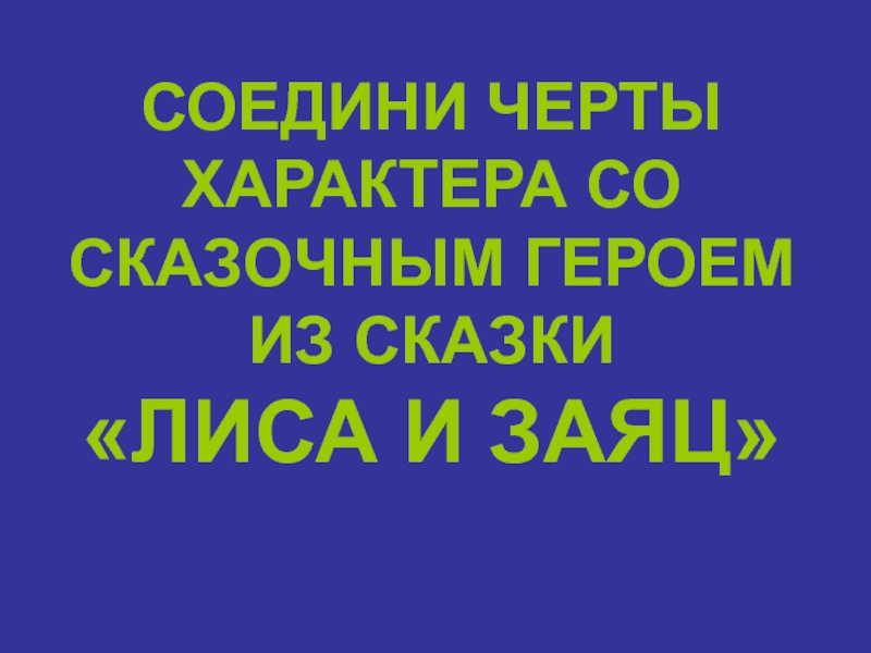 СОЕДИНИ ЧЕРТЫ ХАРАКТЕРА СО СКАЗОЧНЫМ ГЕРОЕМ ИЗ СКАЗКИ «ЛИСА И ЗАЯЦ»