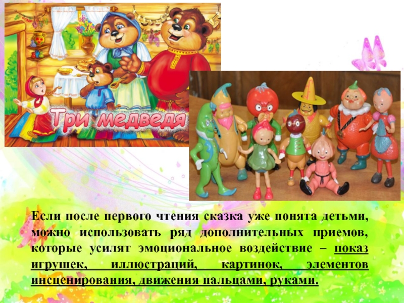 Слайд 8Если после первого чтения сказка уже понята детьми, можно использовать ряд
