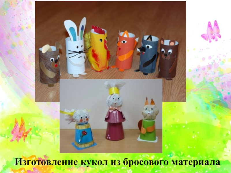 Слайд 15Изготовление кукол из бросового материала