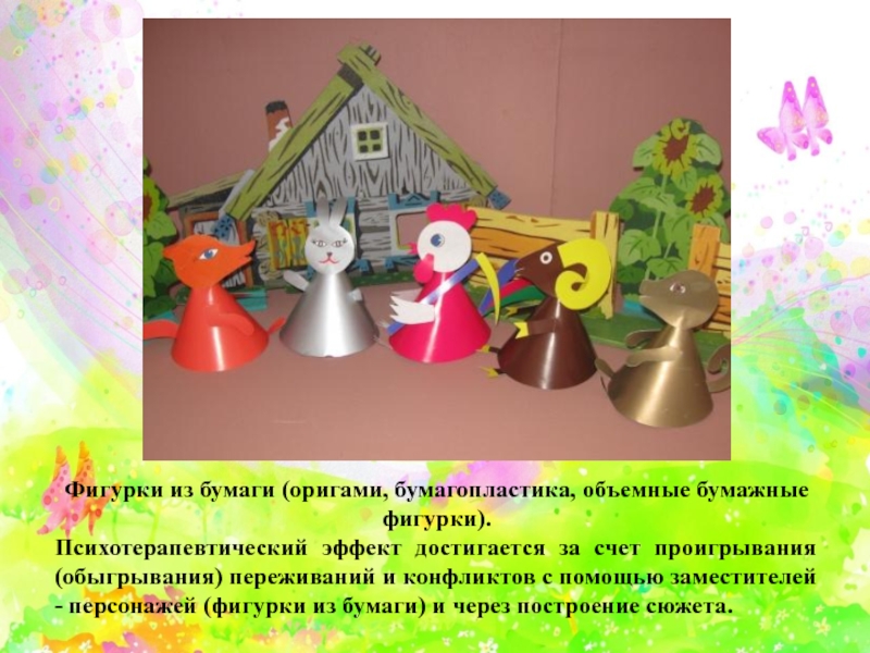 Слайд 23Фигурки из бумаги (оригами, бумагопластика, объемные бумажные фигурки).