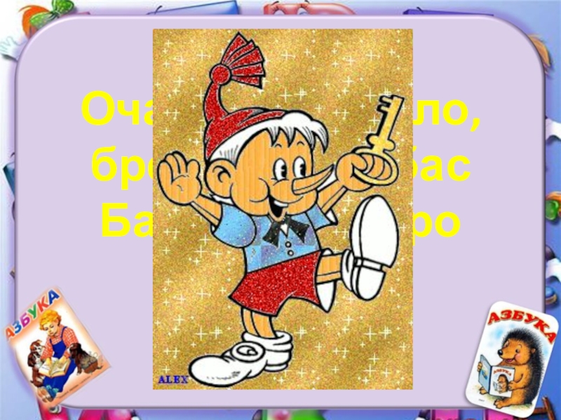 Слайд 24 Очаг, папа Карло, бревно, Карабас Барабас, Пьеро